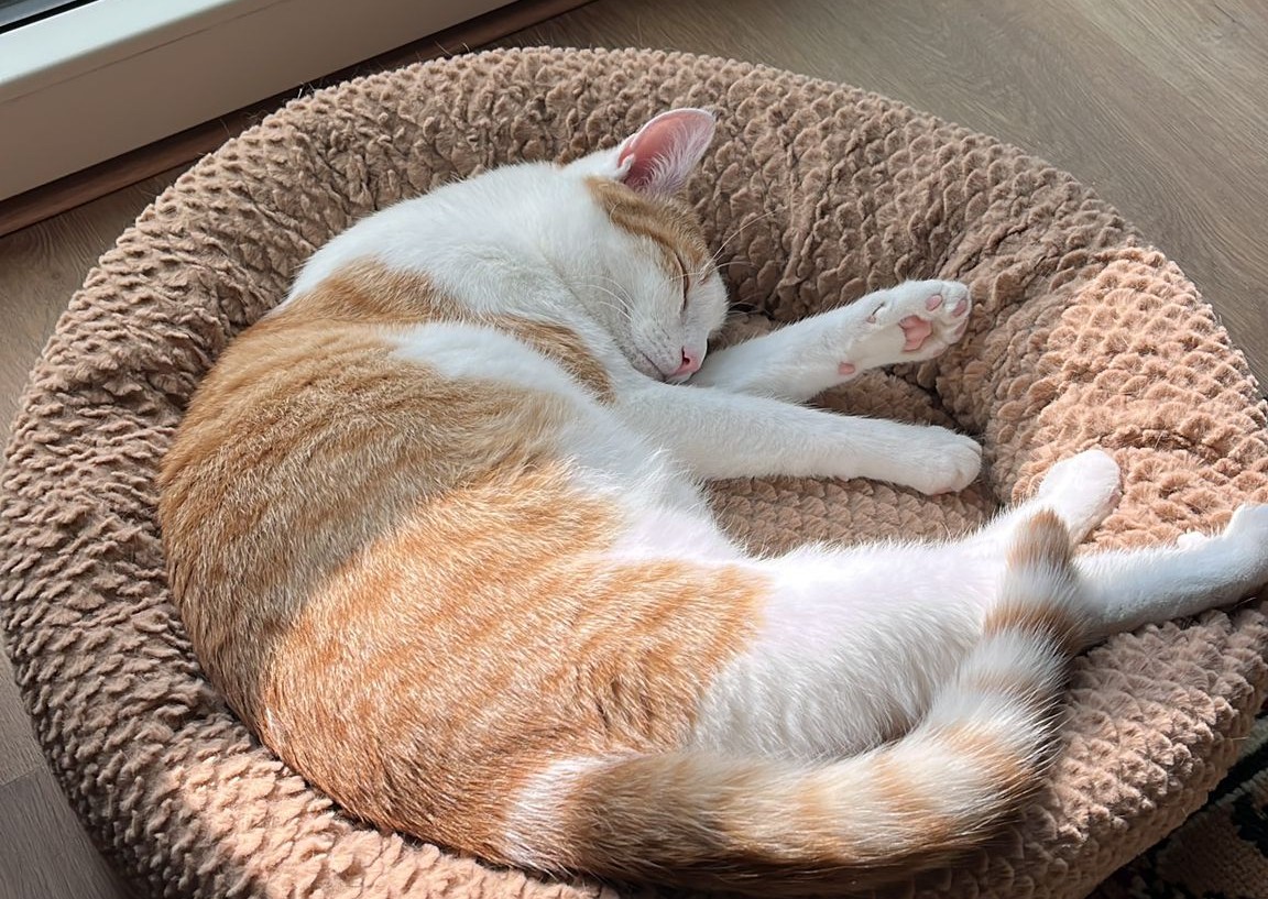 Tesla zorgt voor een ontspannen sfeer in huis. Hij geniet van de simpele dingen: een comfortabel mandje, een plekje naast je op de bank of heerlijk bij je op schoot liggen. Hij is sociaal en vriendelijk naar mensen toe en vindt bezoek helemaal niet spannend. Zijn open en zachte karakter maakt hem een echte allemansvriend.